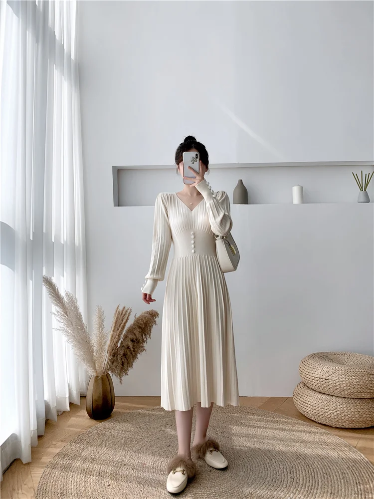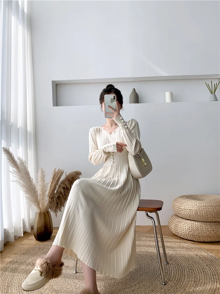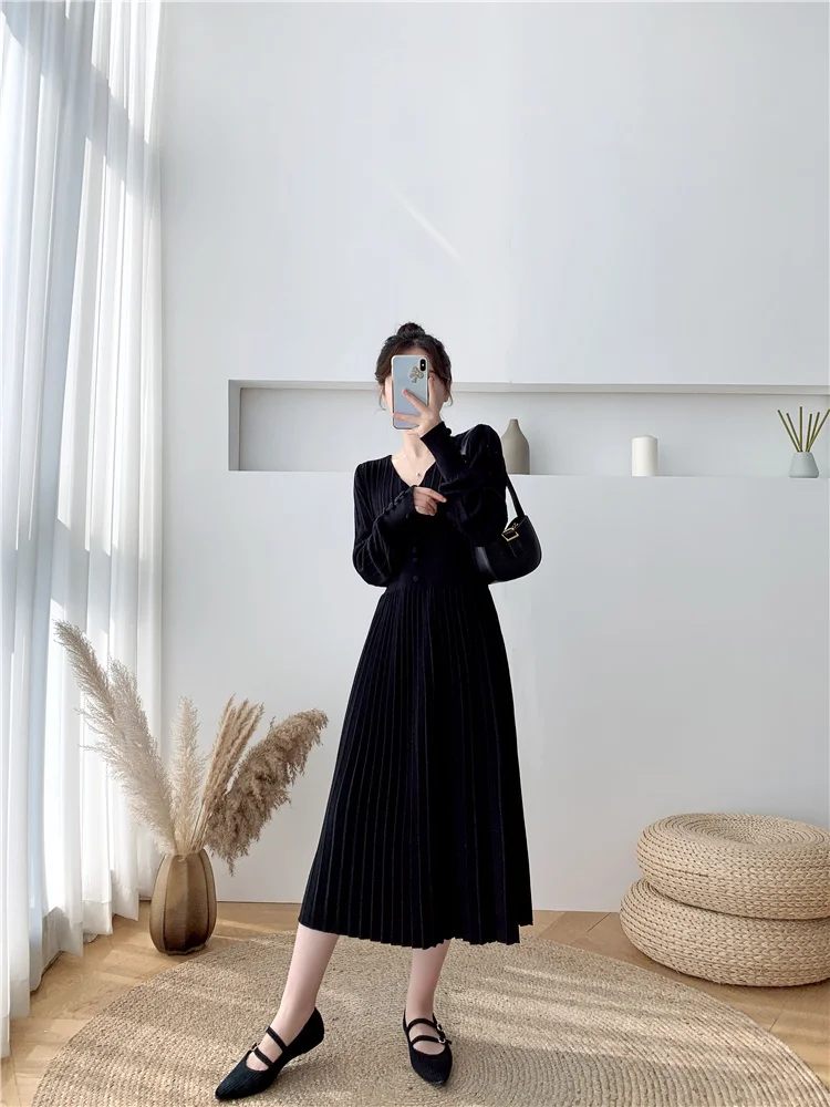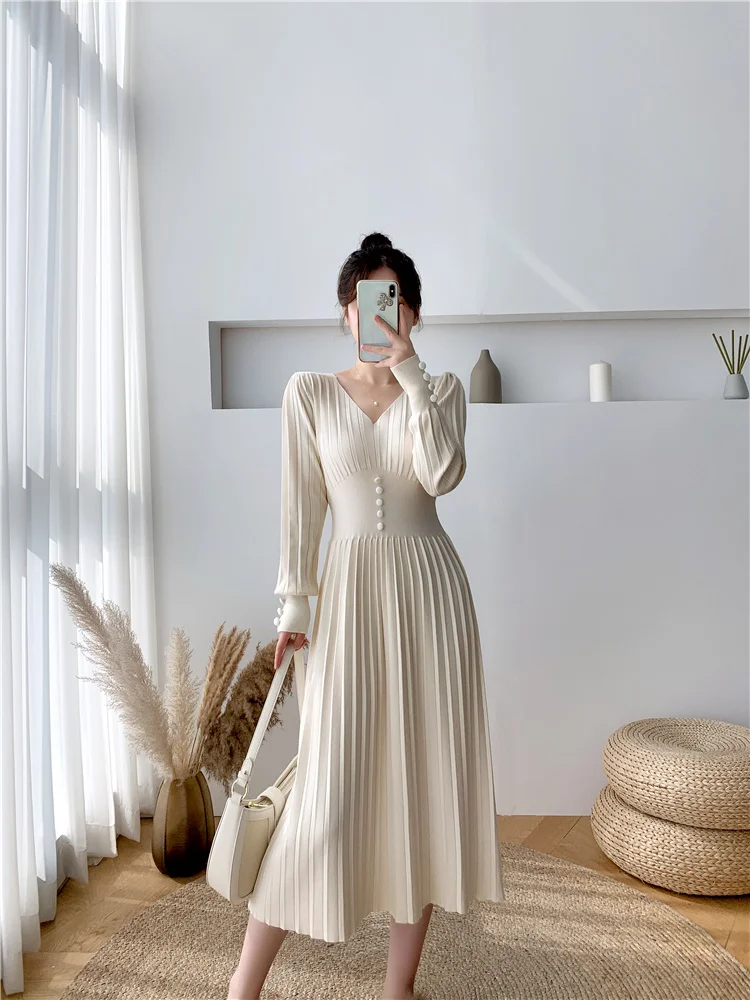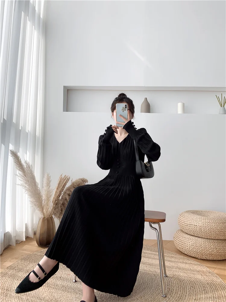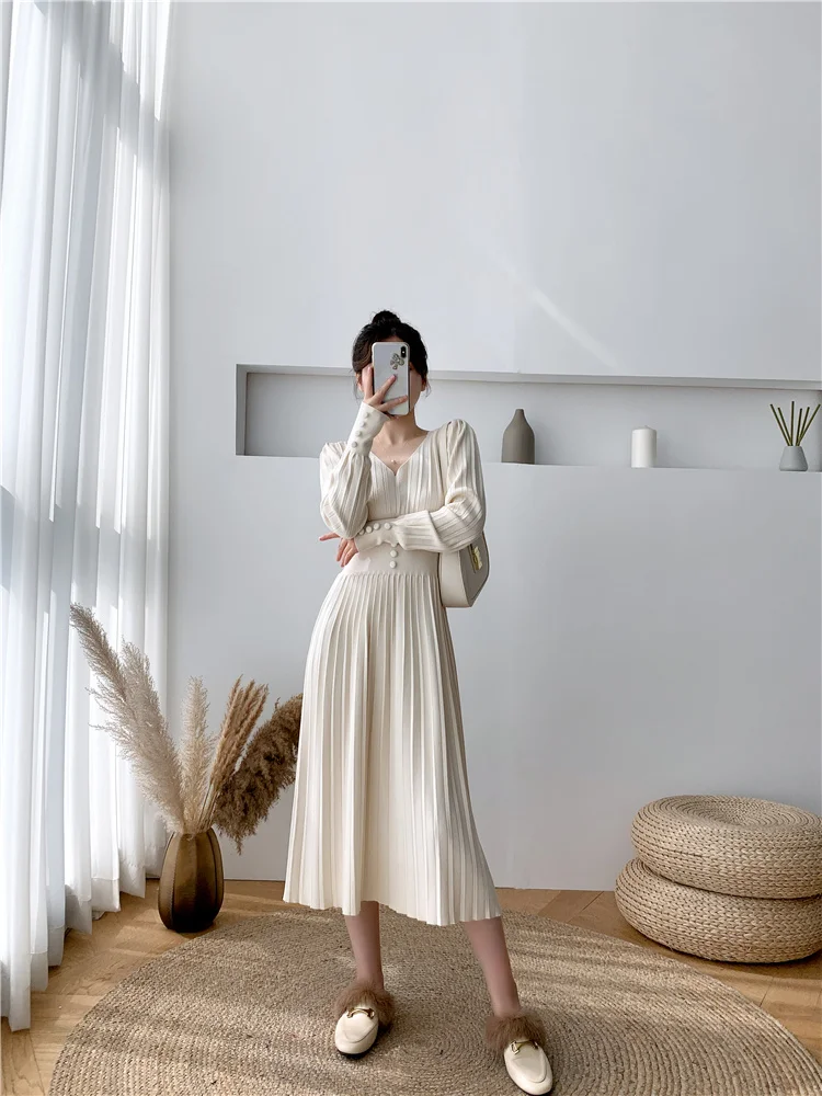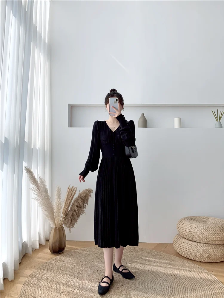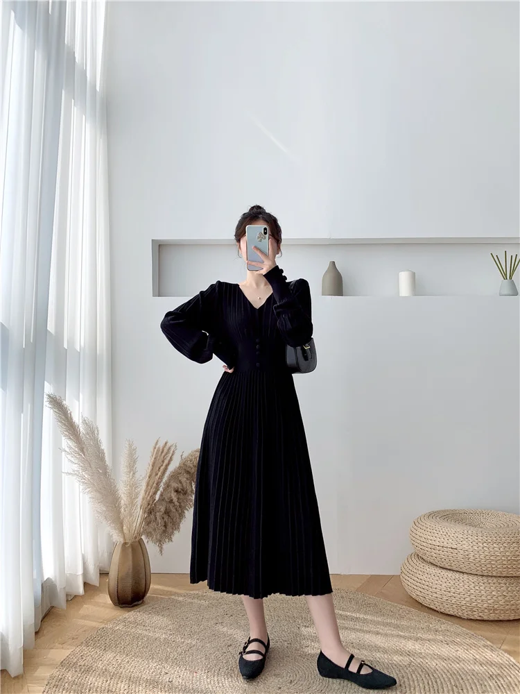 SMHMA جديد خريف وشتاء متماسك طويل طويل المرأة فستان مثير الخامس قليلا قليلا Jap
