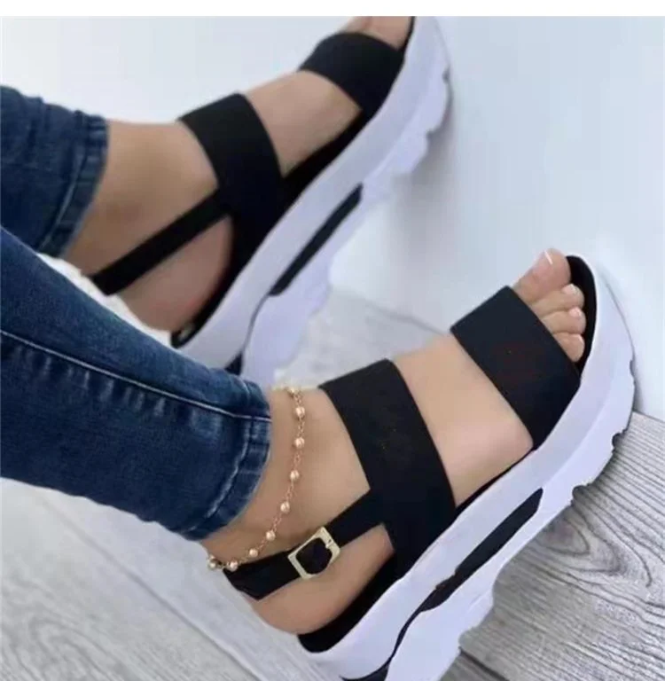 النساء الصنادل اللمحة تو صنادل أرضية مع الكعوب أحذية الصيف النساء خفيفة الوزن أسافين أحذية منصة الكعوب Chaussure فام