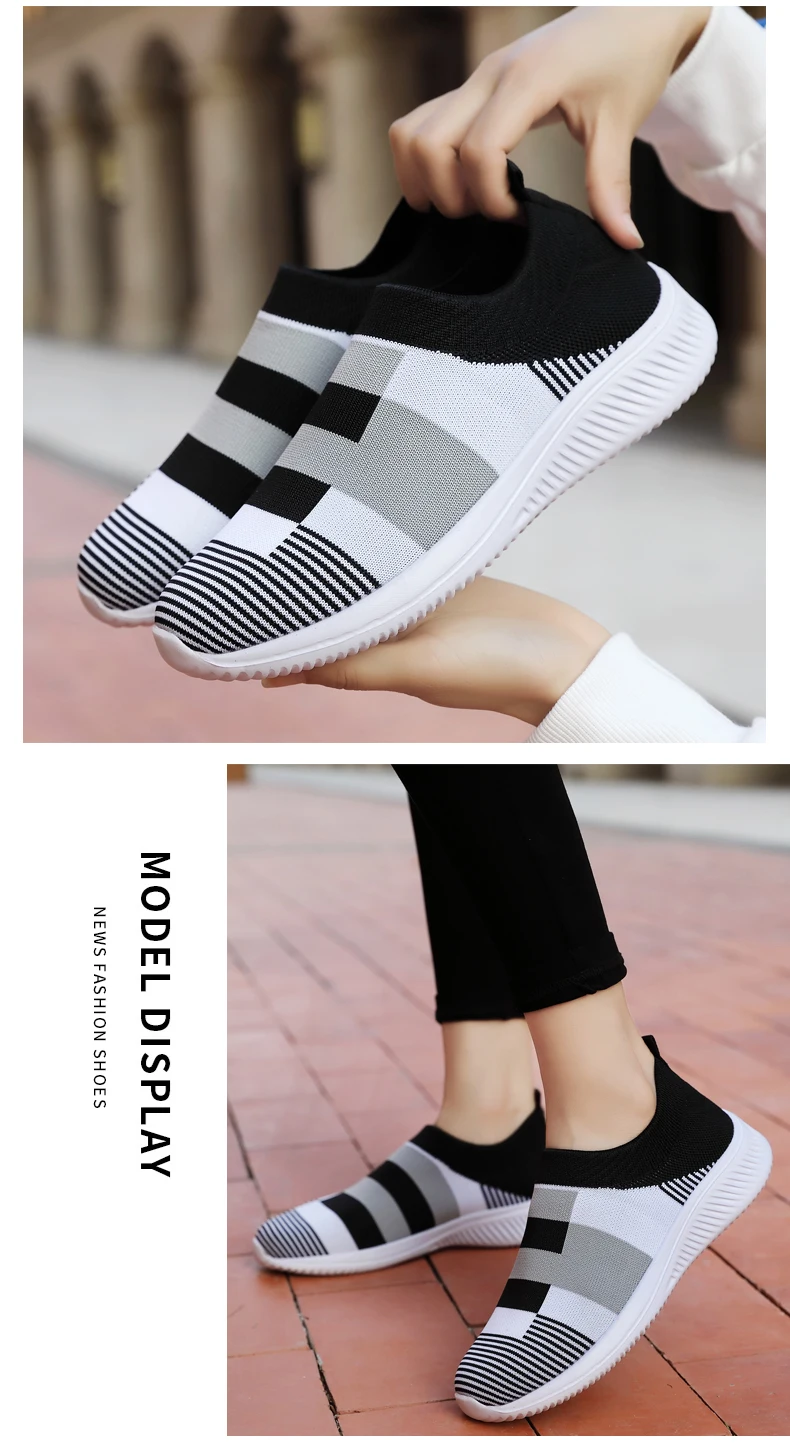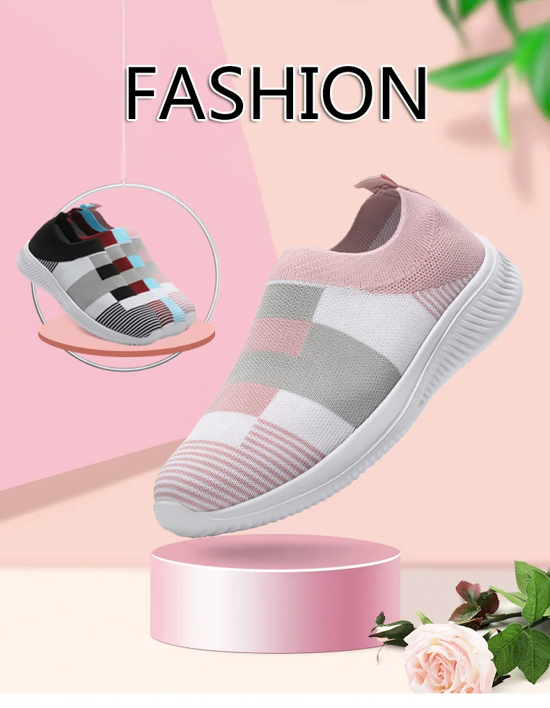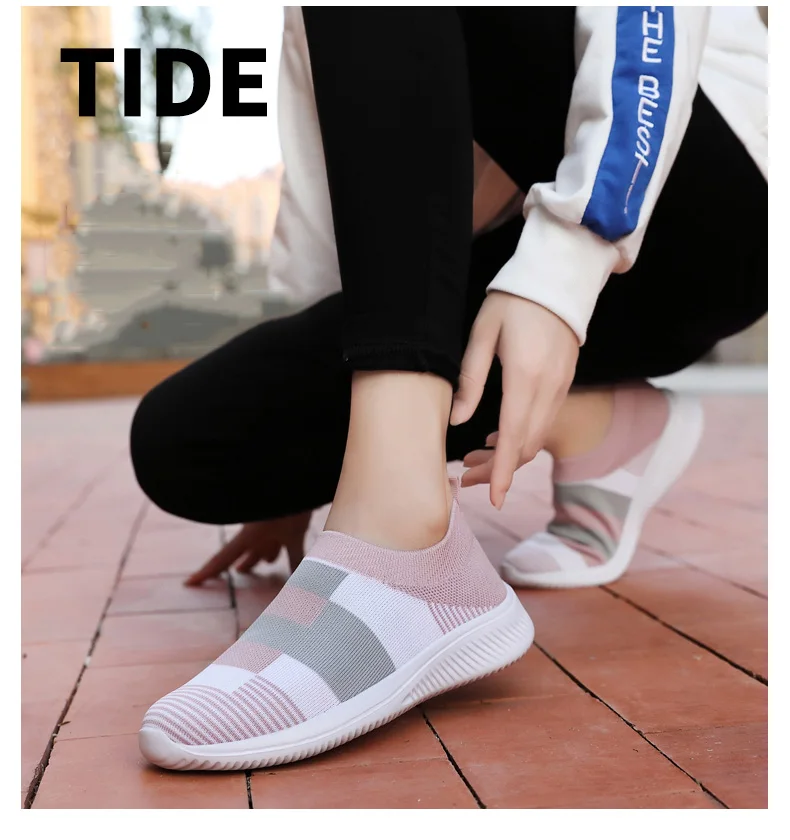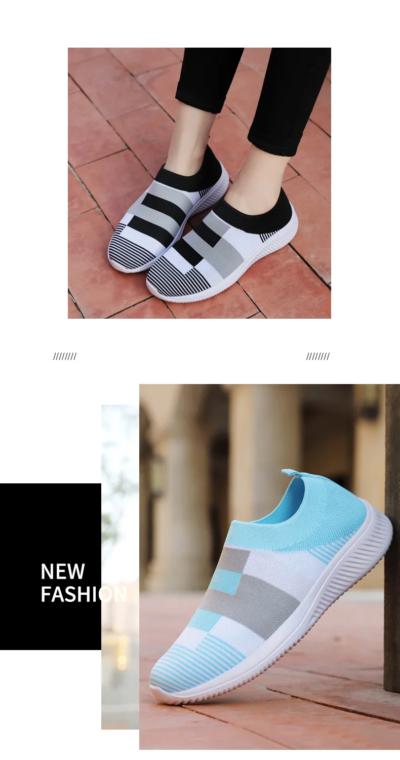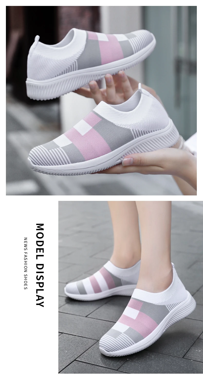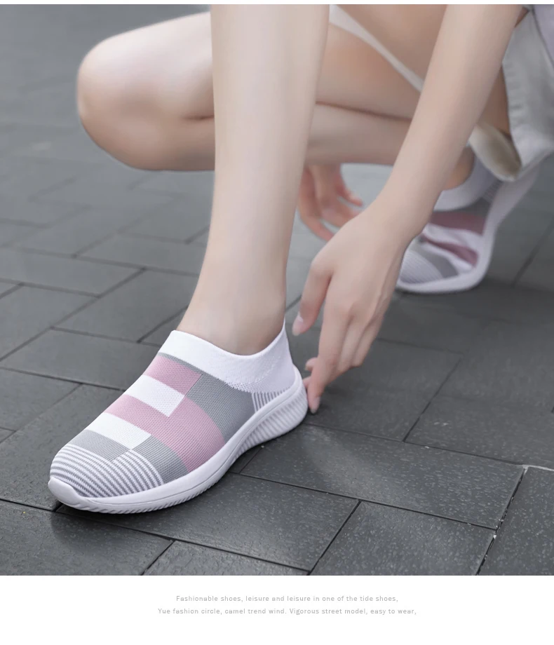 أحذية رياضية النساء أحذية مشي امرأة خفيفة الوزن المتسكعون تنس موضة السيدات عادية الانزلاق على جورب أحذية مفلكنة حجم كبير 2021